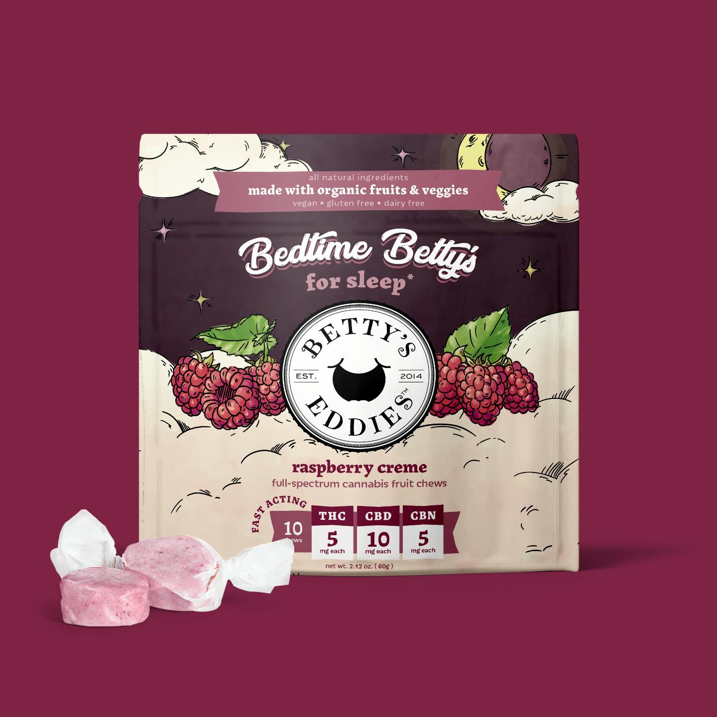 Bedtime Bettys - Raspberry Creme Fruit Chews 10 Pieces (5mg/pc) 50mg